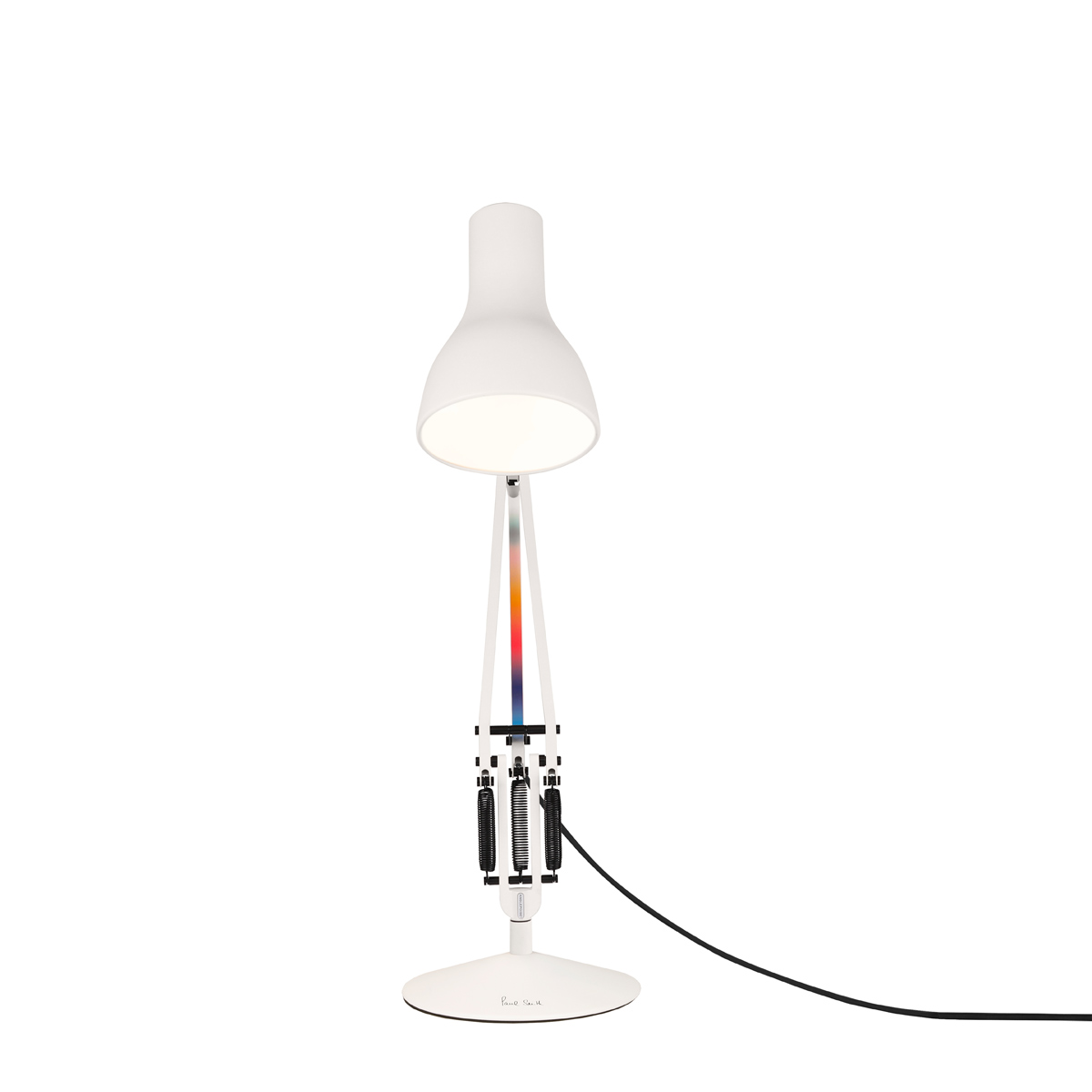 Die farbenfrohe Type 75 Paul Smith Edition entstand in Zusammenarbeit mit der gleichnamigen britischen Modeikone. Seit 2014 arbeitet der Designer mit Anglepoise zusammen und entwarf bereits drei erfolgreiche Farbvarianten des Leuchten-Klassikers.