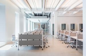 Der visuell und physisch leichte Bürostuhl Physix von Alberto Meda bietet dank seiner raffinierten Konstruktion einen hohen Komfort.
