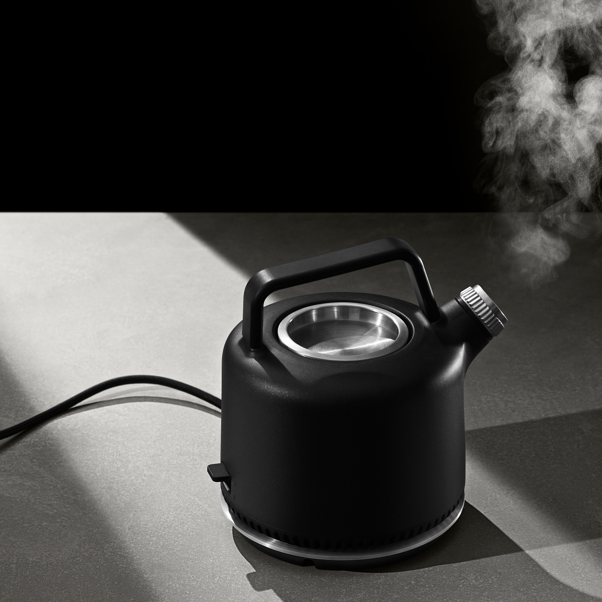 Ein wenig mutet der Vipp 501 Wasserkocher wie Omas Teekessel auf dem Stövchen an – nur lässiger in hochwertiger, matt-schwarzer Pulverbeschichtung.