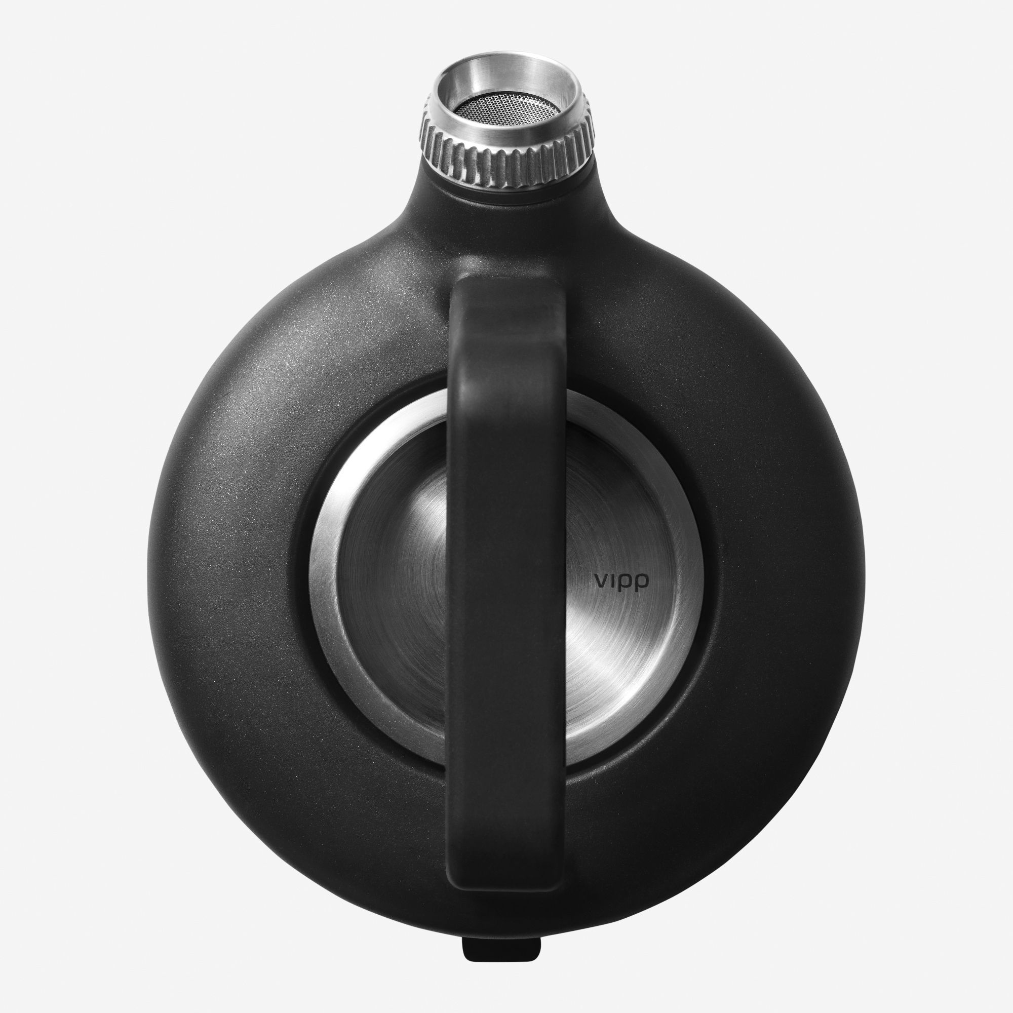 Puristisch, kontrastreich und mit einem Hauch Vintage präsentiert sich der Vipp Wasserkocher in matt-schwarz.