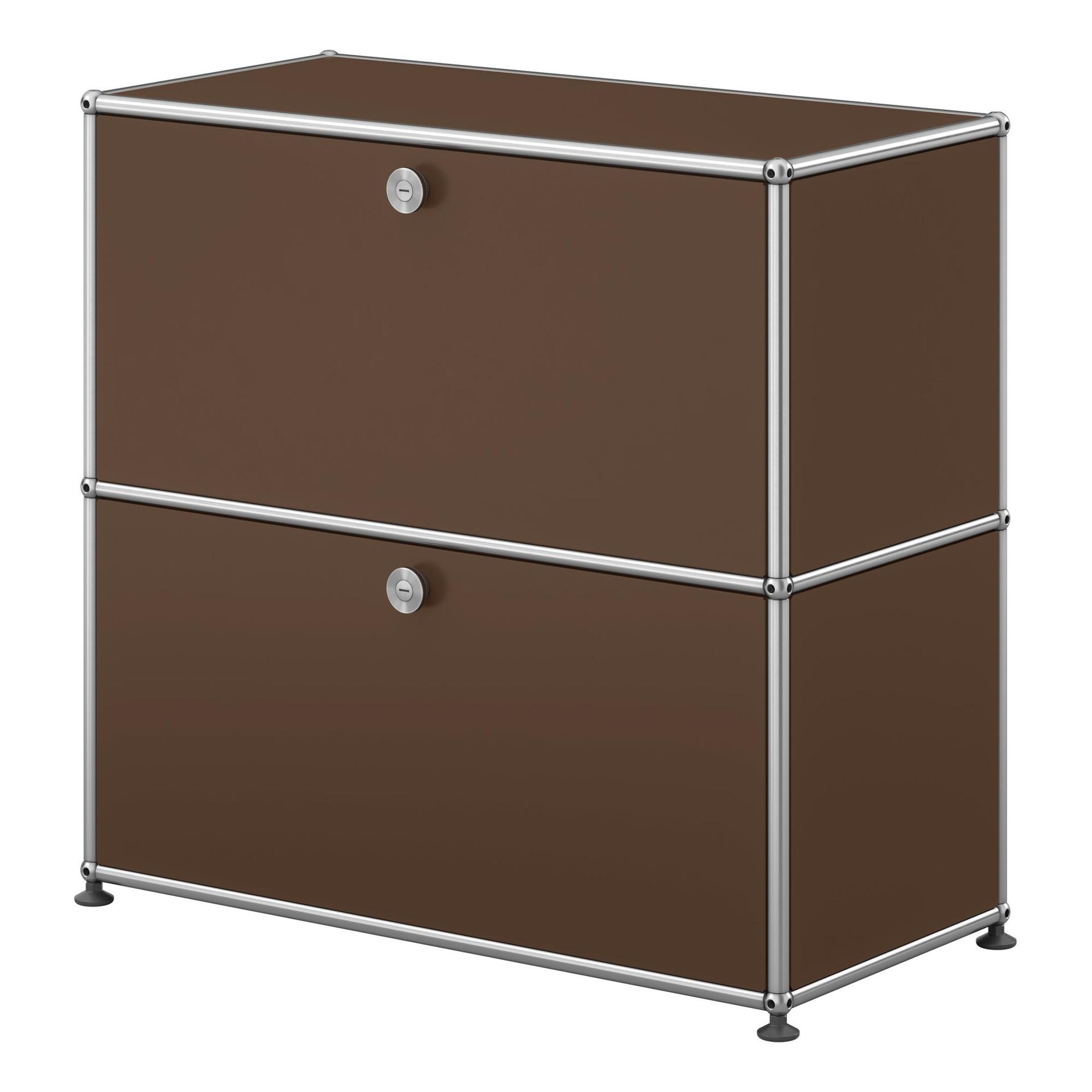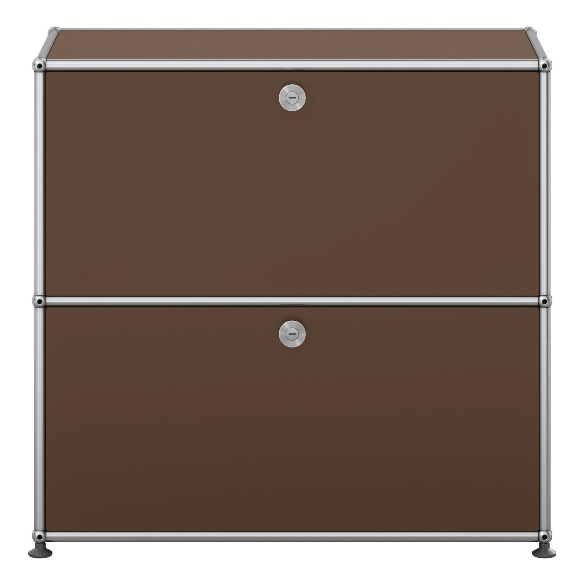 Das modulare Möbelbausystem USM Haller steht seit über 40 Jahren für maßgeschneiderte Lösungen. Aus wenigen Elementen entstehen Möbel für den Wohnbereich, komplette Arbeitsplätze für zu Hause und funktionale Bürolandschaften. In diesem Fall eine kleine Kommode mit zwei Klapptüren.
