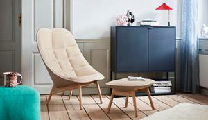 Der Uchiwa Sessel ist in einer weicheren gesteppten Version (Quilt) für eine häuslichere Umgebung und in Formschaum für den Objektbereich bestellbar. Die Basis ist in Eiche natur oder gebeizt erhältlich.
