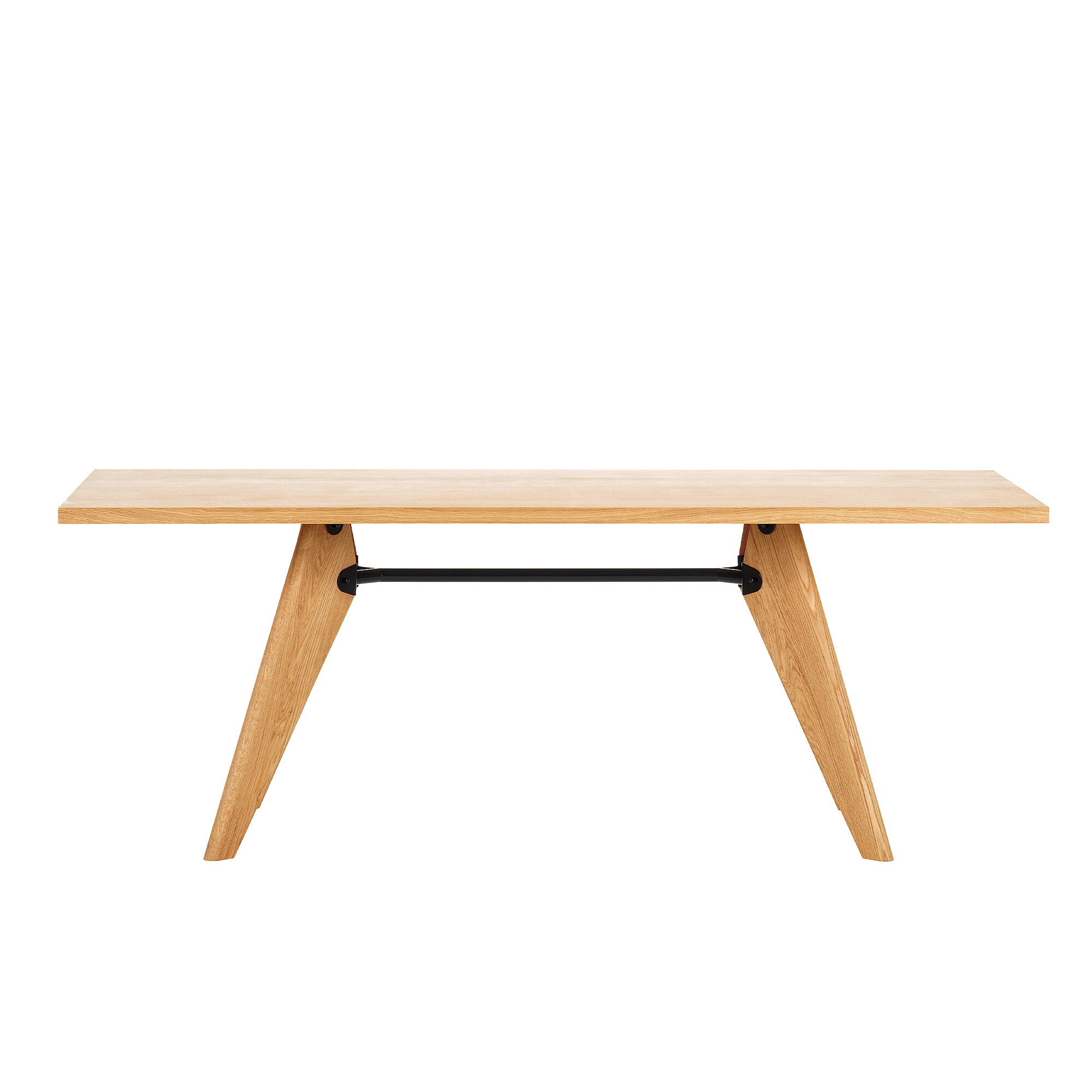 Weil Metall in der Zeit des zweiten Weltkrieges rar war, entwarf Jean Prouvé den Tisch S.A.M. Bois, dessen Beine aus Holz gefertigt werden. Die massiven Hölzer geben dem Tisch hochwertig wohnlichen Charakter.