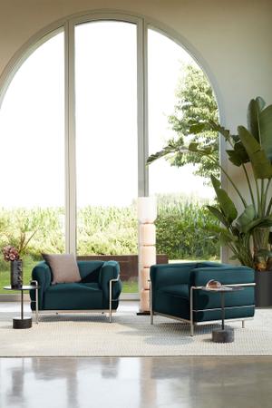 Farbe, Form und Material in den von Le Corbusier, Pierre Jeanneret und Charlotte Perriand entworfenen Wohngegenständen. Drei Aspekte, die Cassina gründlich untersucht und deutlich in dem LC3 Sessel wiederzuerkennen sind.
