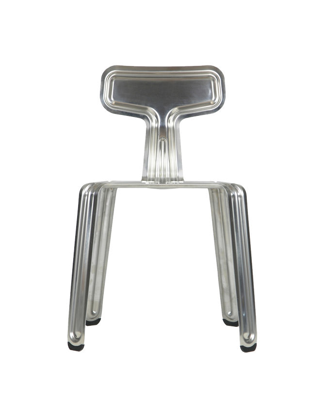 Reduktion und Funktionalität am Stück – der Pressed Chair von Harry Thaler besteht aus nur einem einzigen Stück Aluminium, das mit modernster Fertigungstechnik in Form gepresst wurde.