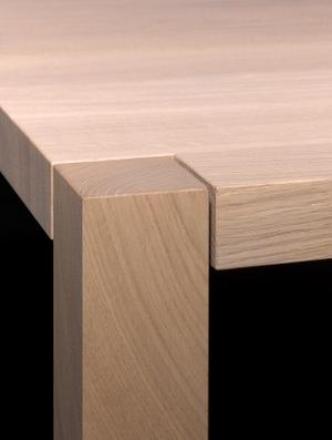 Tisch Sloane stammt aus der kreativen Feder des deutschen Designers Philipp Mainzer. Charakteristisch für seine Entwürfe sind die quadratischen Tischbeine, die durch die filigrane Platte stoßen.