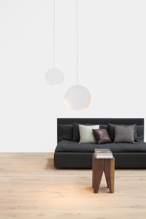 Die LT05 North Pendelleuchte von e15, entworfen von Eva Marguerre und Marcel Besau, besticht durch ihre poetische Schlichtheit und das faszinierende Zusammenspiel von Licht und Form. Reduziert auf einen kreisförmigen Körper, erinnert sie an abstrakte Geometrie oder Mondphasen und verändert je nach Blickwinkel ihr Erscheinungsbild.