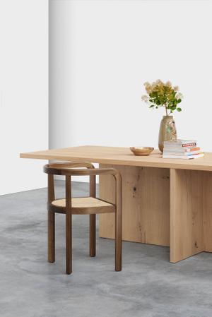 Mit seiner charakterstarken, geschwungenen Rückenlehne, die aus massivem Holz gefräst ist, verkörpert Stuttgart hohe Handwerkskunst und eine zeitlose Eleganz. Der Stuhl ist in gewachster europäischer Eiche oder gewachstem Nussbaum erhältlich und lässt sich durch austauschbare Sitzpolster optional mit Sitzen in Stoff, Leder und Wiener Geflecht bestücken. Als ein Entwurf von überzeugender Modernität und Präsenz kann Stuttgart als anspruchsvoller Dining-, Executive- oder Besucherstuhl eingesetzt werden.