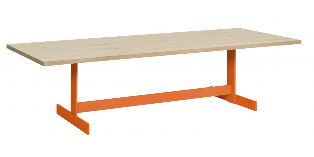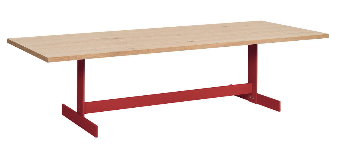 Der Tisch Kazimir wurde von Philipp Mainzer entworfen. Dabei liegt der Fokus auf einer individuellen Konstruktion. Das Gestell in pulverbeschichtetem Stahl trägt mittig die Tischplatte aus massiver europäischer Eiche.