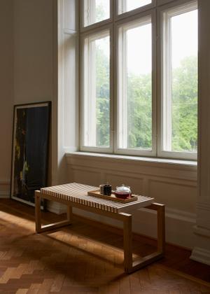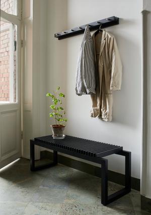 Die Bank Cutter wurde ursprünglich für die Ausstellung Walk the Plank entworfen. Hier entstand, inspiriert vom deutschen Bauhaus, die Idee eines Lamellensitzes auf einem zusammenhängenden Rahmen. Das minimalistische Design ist zeitlos und passt in die meisten Umgebungen, sowohl innen als auch außen.   Die Cutter Bank ist mit den gleichnamigen Boxen als Stauraum kombinierbar.