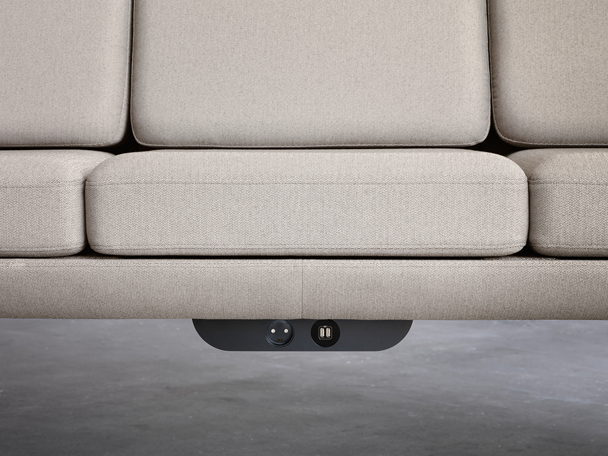 Das Netzteil wird in wenigen Schritten unter dem Sofa montiert und kann bei Bedarf einfach abgenommen werden.
