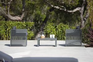 Laut Designer José A. Gandía-Blasco ist „DNA eine Kollektion von Möbeln für den Außenbereich, die das Wesen dieser horizontalen Geometrien neu interpretiert“. Das Licht des Mittelmeers war stets eine Inspiration und Lebensquelle für den Genuss im Freien.
