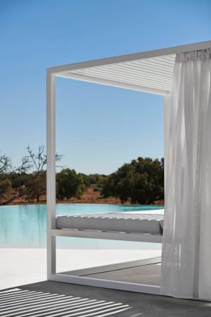 Das Daybed ist mehr als nur ein überdachtes Bett für den Außenbereich, es ist eine Ikone von Gandía Blasco, ein perfektes Möbelstück für den Außenbereich, das man in Gärten, auf Terrassen und am Strand genießen kann.