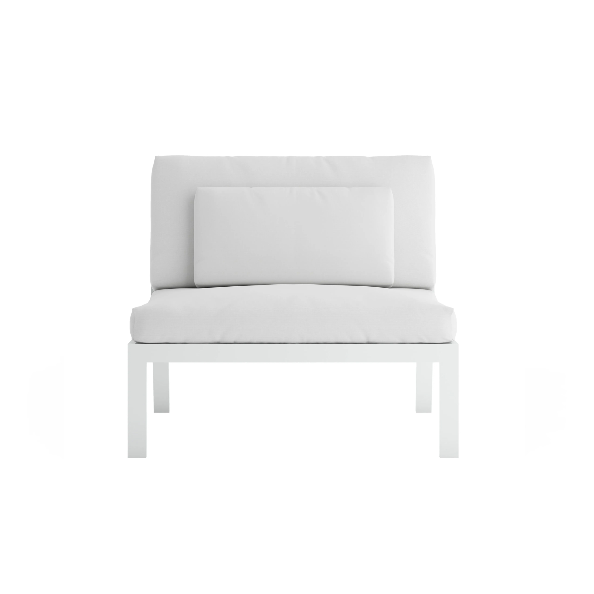 Das Sessel-Modul Timeless 3 ist eine weitere Option innerhalb der Familie. Es handelt sich um ein Designersofa für eine Person, dessen Struktur aus geschweißtem, pulverbeschichtetem Aluminium in verschiedenen Farbvarianten besteht, von den lebenslangen Klassikern bis hin zu helleren Tönen.