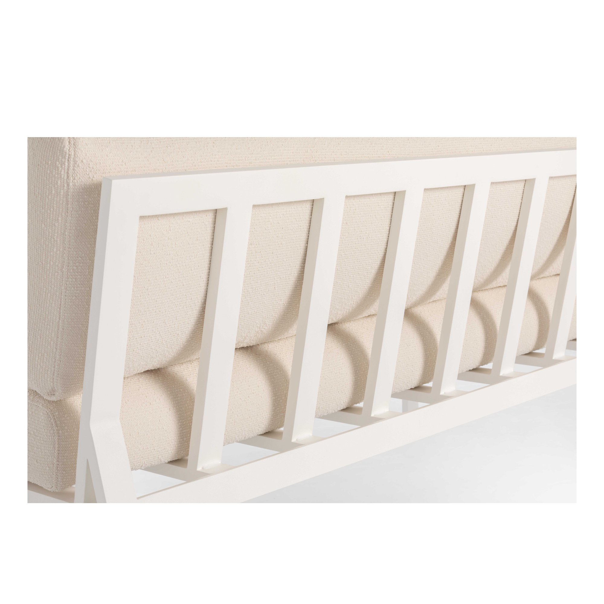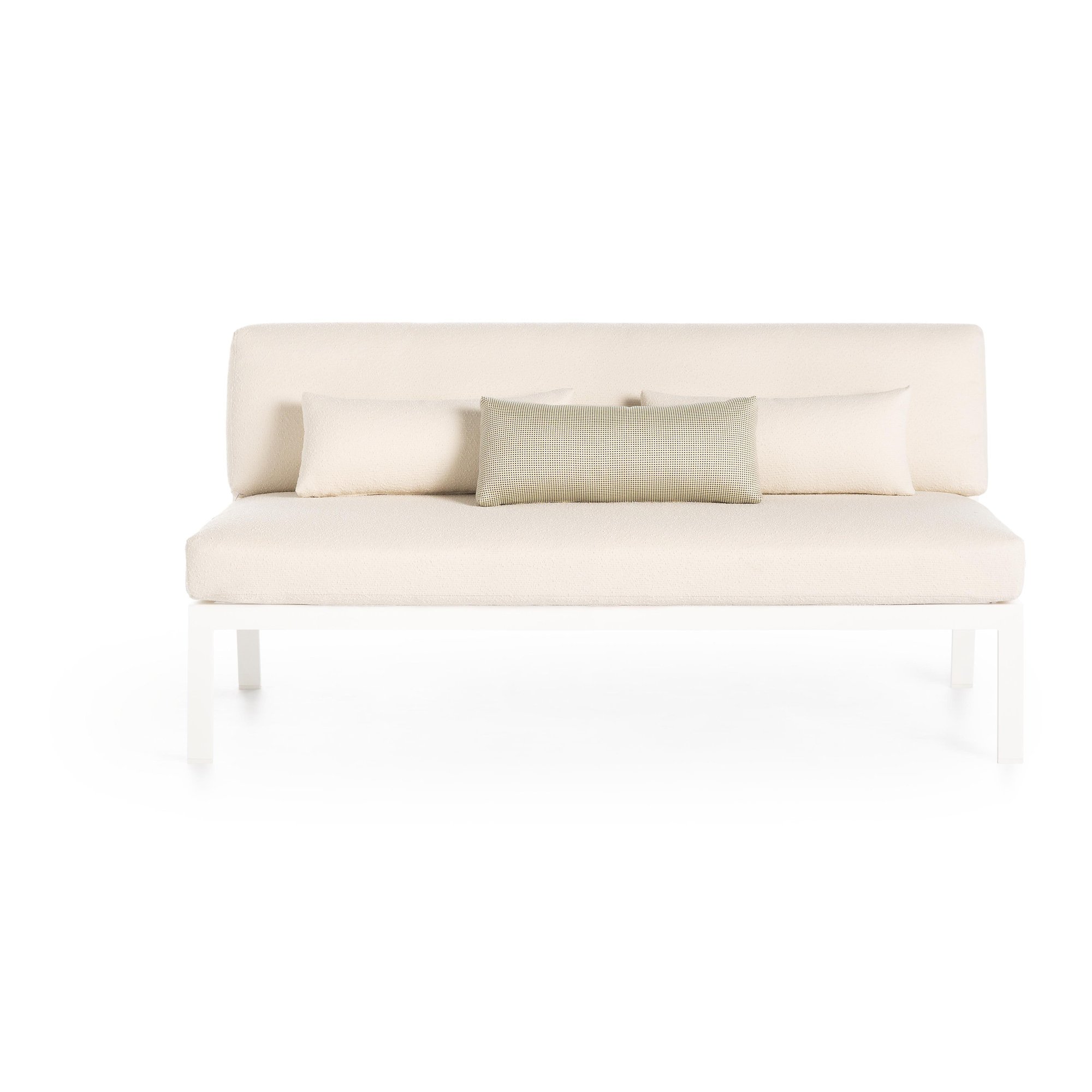 Das Sofa-Modul Timeless 4 vervollständigt die Kollektion. Es ist ein bequemes und leichtes Outdoor-Sofa mit Platz für 3 Erwachsene, das Sie allein oder in Kombination mit den anderen Timeless-Sofas und -Tischen genießen können. Die Struktur besteht aus geschweißten Aluminiumprofilen, die in verschiedenen pulverbeschichteten Farbvarianten erhältlich sind, die sich Ihrem Geschmack und Ihren Bedürfnissen anpassen.