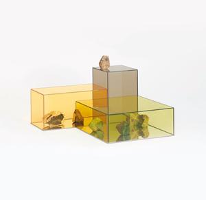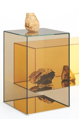 Die Donald Beistelltische, entworfen von Philippe Starck für Glas Italia, sind wahre Design-Statements. Gefertigt aus farbigem, reflektierendem Glas, spielen sie mit Transparenz und Licht, wodurch eine faszinierende optische Tiefe entsteht. Die geometrischen Formen und präzisen Kanten verleihen den Tischen eine skulpturale Ästhetik, die jede moderne Einrichtung bereichert.
