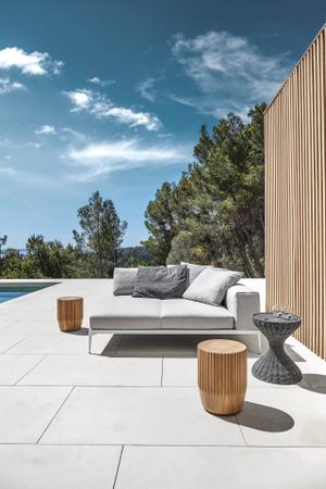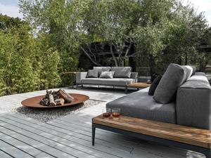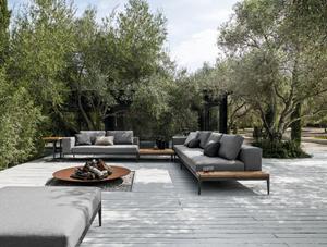 Das mittlere Sitzelement der Grid Lounge Kollektion kann optimal zu weiteren Sitzelementen der Outdoor Lounge Gruppe von Gloster ergänzt werden. Sie können Ihre Sitzgruppe immer wieder neu anpassen oder dieses Mittelmodul einzeln als freistehendes Sofa ohne Armlehnen nutzen. Durch die Einsparung der Armlehnen finden bis zu vier Personen Platz. Das gemütliche Lounge-Modul ist wie alle anderen Sitzelemente der Grid Lounge Kollektion in vier verschiedenen Bezugsfarben mit einer wetterfesten Polsterung aus Soft-Touch-Stoff und einem pulverbeschichtetem Aluminiumuntergestell in der Rahmenfarbe Meteor oder Weiß erhältlich. Der Name " Grid ", der der Kollektion ihren Namen gibt, stammt aus dem Englischen und bedeutet auf Deutsch "Raster". Die verschiedenen Sitzmodule bilden zusammen ein Grundraster und können je nach persönlichem Geschmack und Raumsituation flexibel angepasst werden.