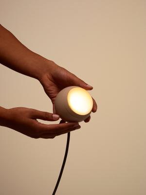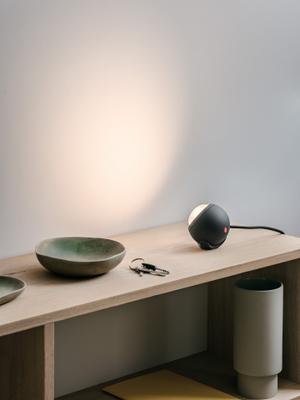 Die kleine Leuchtkugel Falling In Love erweist ihrem Name alle Ehre. In ein rutschfestes Nest gelegt, lässt sich der Lichtkegel flexibel ausrichten, um ein Objekt anzustrahlen oder Lichtakzente zu setzen.
