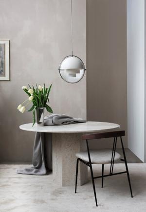 Was auf den ersten Blick aussieht, wie ein skulpturales Kunstwerk entpuppt sich auf den Zweiten als ikonische Hängeleuchte der skandinavischen Designgeschichte. Die Multi-Lite lässt sich, je nach Belieben, an individuelle Bedürfnisse anpassen, denn ihre äußeren zwei Schirme rotieren um ihren inneren Kern. So entsteht entweder indirektes, nach oben oder unten gerichtetes Licht. Mit ihrem extravaganten Aussehen setzt sie Akzente über Esstischen, macht sich aber auch in Gruppen auf verschiedenen Höhen montiert sehr gut als Lounge-Beleuchtung oder Hingucker über dem Couchtisch.