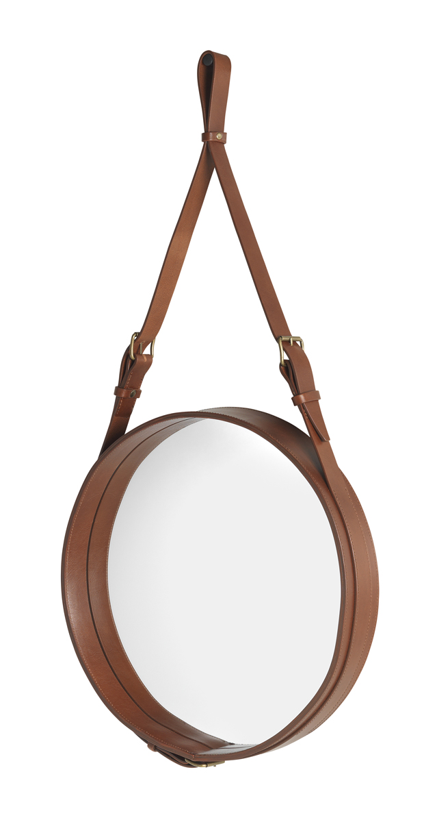 Der dänische Hersteller Gubi lässt den edlen Wandspiegel Adnet nach den Originalentwürfen von 1950 anfertigen. Sein rundes Glas ist von Ledergurten mit Messingbeschlägen ummantelt, die als Wandaufhängung dienen. Besonders praktisch: die integrierten Schnallen machen eine individuelle Justierung des Spiegels möglich.