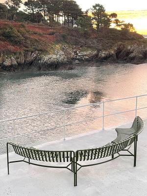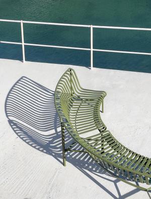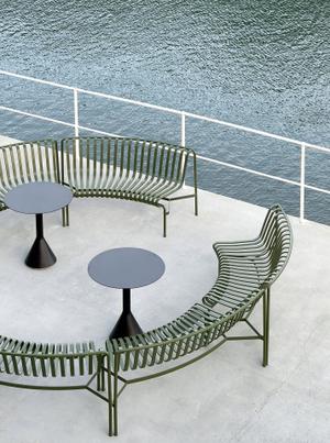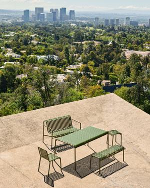 Mit der Palissade-Serie liefern die Brüder Ronan und Erwan Bouroullec eine moderne, stilsichere Alternative zu klassischen Holz-Gartenmöbeln. Wetterfest und pulverbeschichtet überzeugen die Palissade-Möbel vor allem durch ihre Struktur: Ihre Konturen bestehen aus rundem Stahlrohr, die von lammellenförmig angeordneten Stahl-Bändern ausgefüllt sind. So ergibt sich eine dynamische Silhouette, die in vier dezenten Farben sommerliche Leichtigkeit ausstrahlt. Dass die Sitzgelegenheiten auch ohne Polster komfortabel sind, liegt an der ergonomischen Linienführung, die die Designer bis ins kleine Detail perfektioniert haben. Falls trotzdem Kissen gewünscht sind, können diese auf Bestellung mitgeliefert werden.