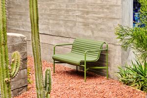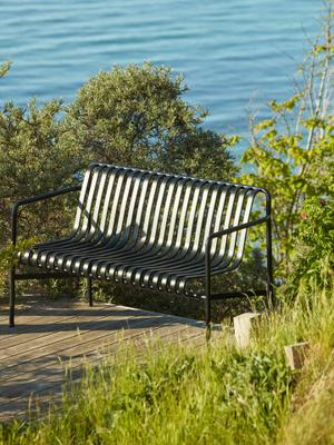 Diese Bank mit Lehne ist Teil der Palissade-Serie, die sich optimal für den Einsatz im Außenbereich eignet. Ob auf dem Balkon, der Terrasse oder im öffentlichen Kontext, die moderne Outdoor-Kollektion bietet für jeden Anlass ein passendes Arrangement.