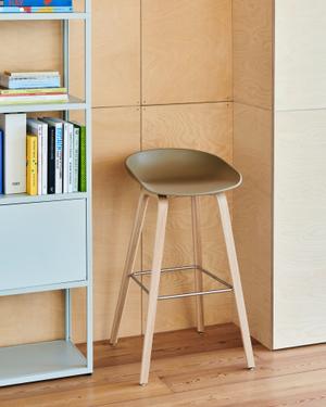 Der Barhocker AAS 32 überzeugt durch sein markantes Design mit einer sanft geschwungenen Rückenlehne und eleganten, langen Holzbeinen. Wie alle Modelle der About A Stool-Kollektion präsentiert sich auch der AAS 32 mit einem vielseitigen Profil, das sich harmonisch in verschiedene Umgebungen einfügt. Die Sitzschale besteht aus recyceltem Kunststoff und ist in einer breiten Palette zeitgemäßer Farben sowie verschiedenen Polsteroptionen erhältlich. Die Beine sind in zwei Höhen und unterschiedlichen Holzoberflächen verfügbar, was eine flexible Anpassung an verschiedene Einsatzbereiche ermöglicht. Mit seinem klaren, aber dennoch ausdrucksstarken Erscheinungsbild eignet sich der AAS 32 ideal als Barhocker in Büros, öffentlichen Bereichen oder privaten Räumen.
