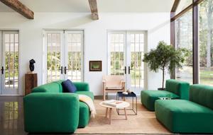 Das Sofa Mags Soft ist die etwas weicher gepolsterte Variante des beliebten Hay-Wohnzimmermöbels. Auch optisch zeichnet es sich durch sichtbare, nach außen gestellt Nähte aus.