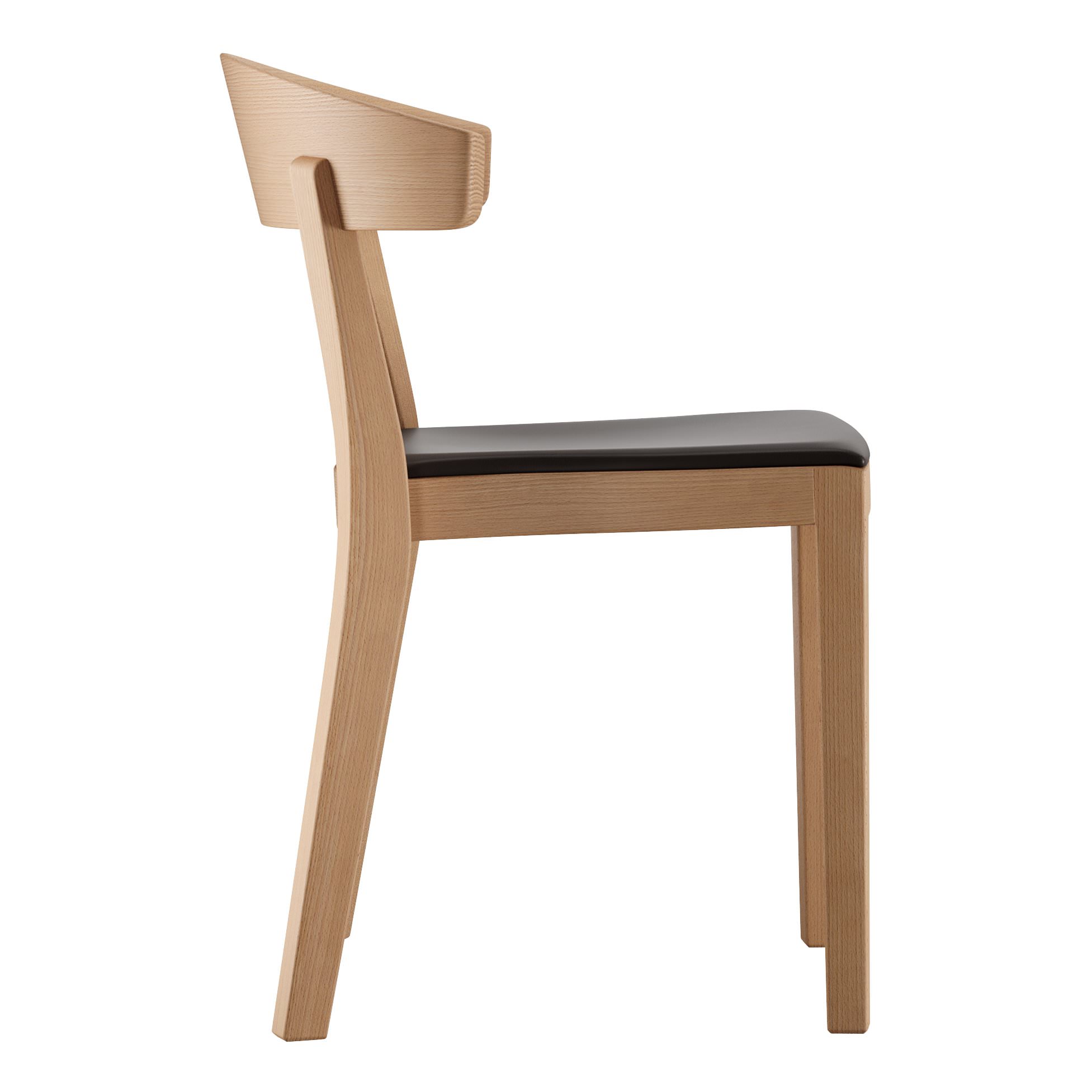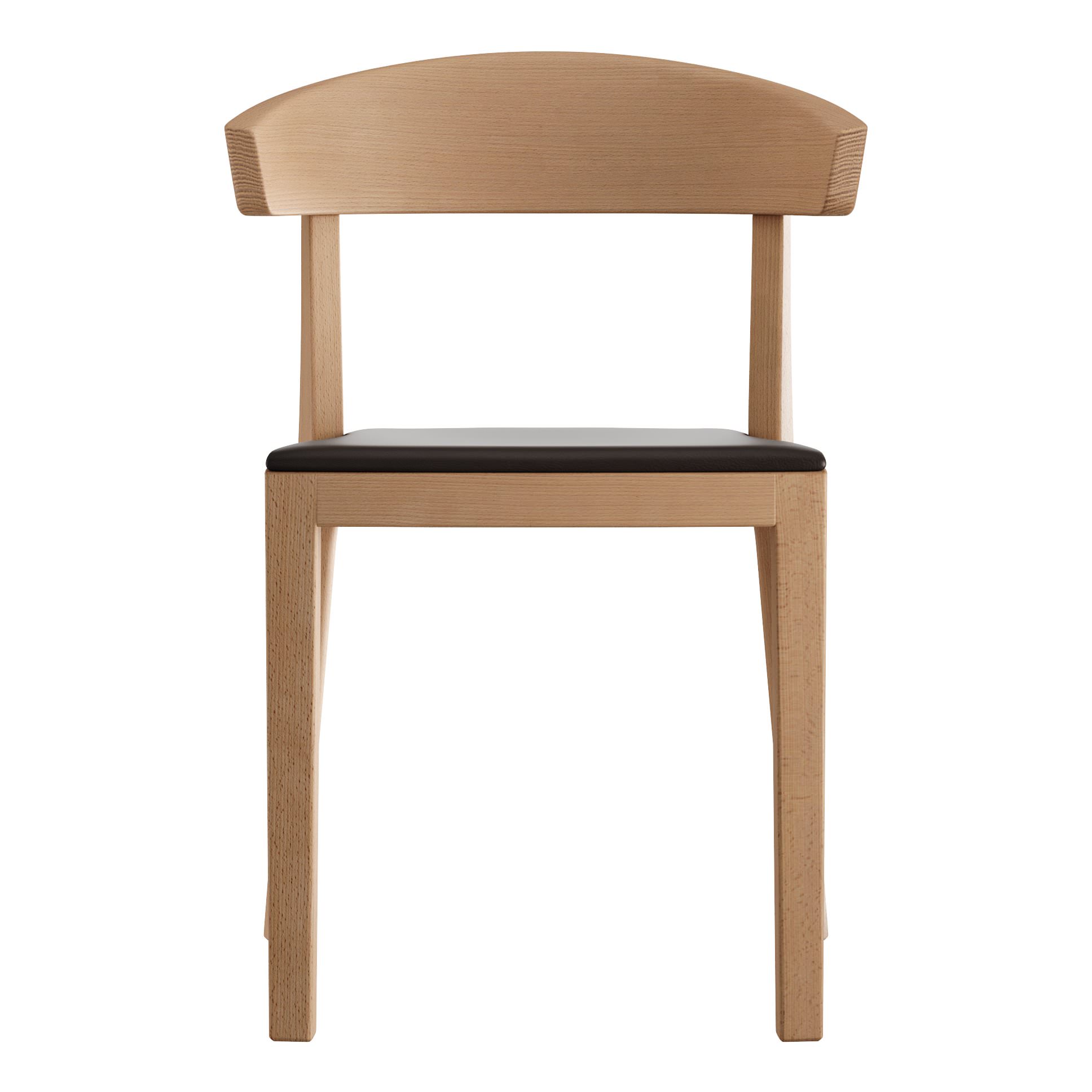 Der Rücken des Klio des fließend in die Armlehnen über und wird wahlweise aus Buche oder Eiche gebogen.