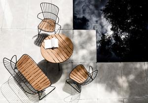 Der Loungestuhl PAON verbindet skandinavische Leichtigkeit mit einem Hauch französischer viktorianischer Romantik. Die PAON-Kollektion umfasst einen Esszimmerstuhl, einen Lounge-Stuhl, einen Schaukelstuhl, eine Zweisitzer-Bank und einen Barhocker. Alle Stücke bestehen aus pulverbeschichtetem Stahl und Bambuslamellen. Der PAON-Stuhl überrascht mit einem unerwartet hohen Sitzkomfort für einen Metallstuhl.