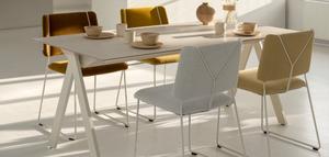Das Designerduo Färg & Blanche ließ sich bei der Entwicklung der Frankie-Serie von der Modebranche inspirieren und entwarf eine Kollektion, die das Motiv der Hosenträger modern interpretiert. Die markanten Rückendetails des Frankie Stuhls erinnern an dieses klassische Element, wodurch das Design eine einzigartige, menschliche Note erhält. Der Stuhl kombiniert eine bequeme Polsterung mit einer flexiblen Rückenlehne, was ihn besonders für den Einsatz in öffentlichen Bereichen wie Lobbys, Lounges oder Warteräumen geeignet macht. Dank seiner eleganten Ästhetik und des hohen Komforts fügt sich der Frankie Stuhl harmonisch in verschiedenste Räume ein und wird schnell zum Highlight jeder Einrichtung.