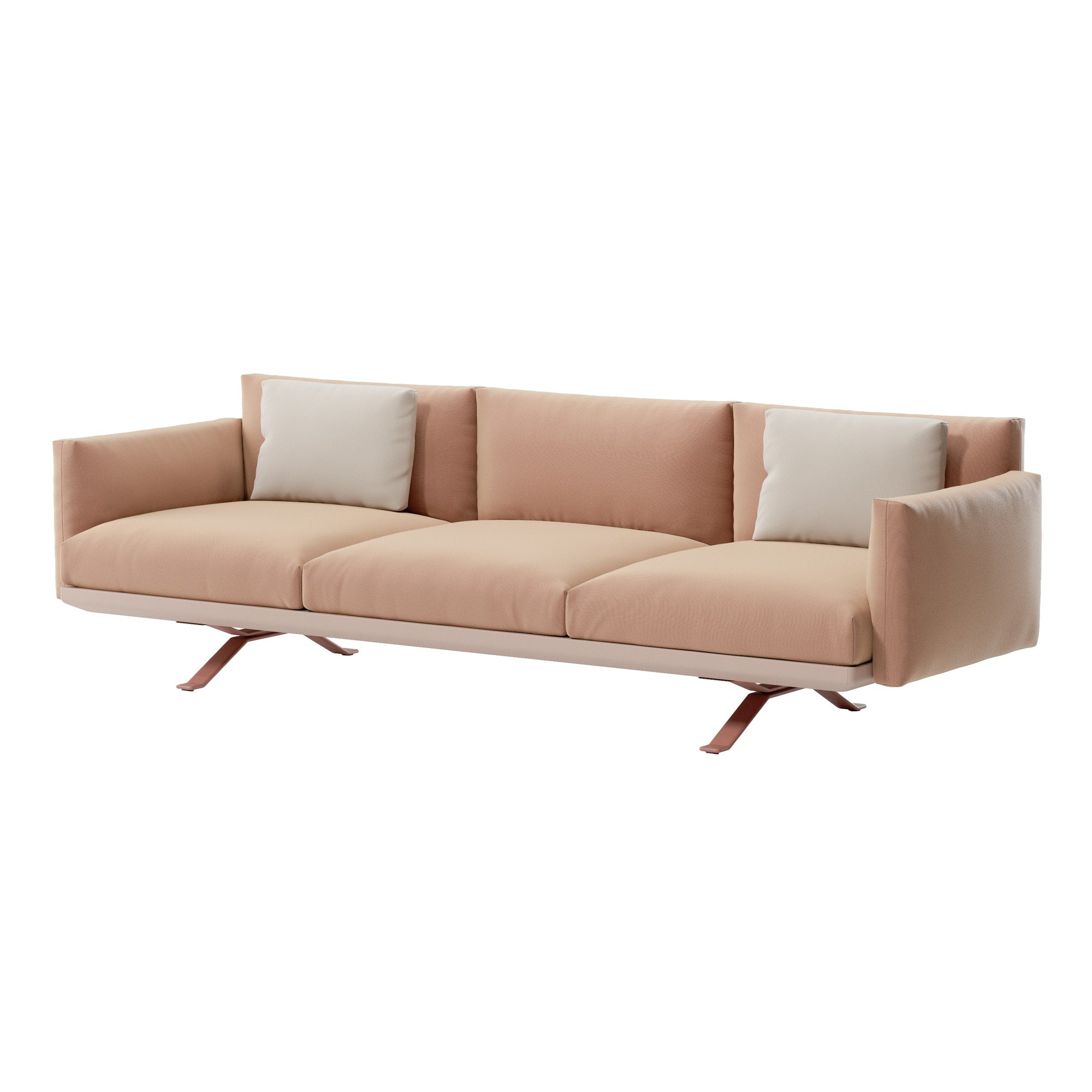 Ein zentrales Element dieser Kollektion ist der Aluminiumrahmen, dessen minimalistische Linienführung die exzellente Materialqualität und die vielfältigen Kombinationsmöglichkeiten betont. Auf dieser flexiblen und leichten Struktur sind großzügig gepolsterte Sitzgelegenheiten platziert, die sich individuell an verschiedene Module anpassen lassen.
