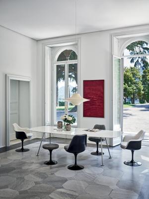 Der Saarinen Stuhl ist nach dem Designer selbst benannt und erinnert mit seiner nach oben öffnenden Wirkung an eine Tulpe.