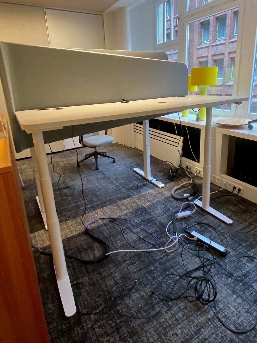 - Tischplatte - Unterkonstruktion mit Traversen und Kabelclips