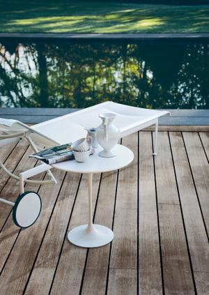 Die Liege 1966 zeichnet sich durch einzigartiges Design und eine hohe Widerstandsfähigkeit aus. Florence Knoll initiierte die Kollektion 1966, da sie sich Möbel für den Außenbereich wünschte, welche dem salzigen Klima ihrer Heimat Florida standhalten.