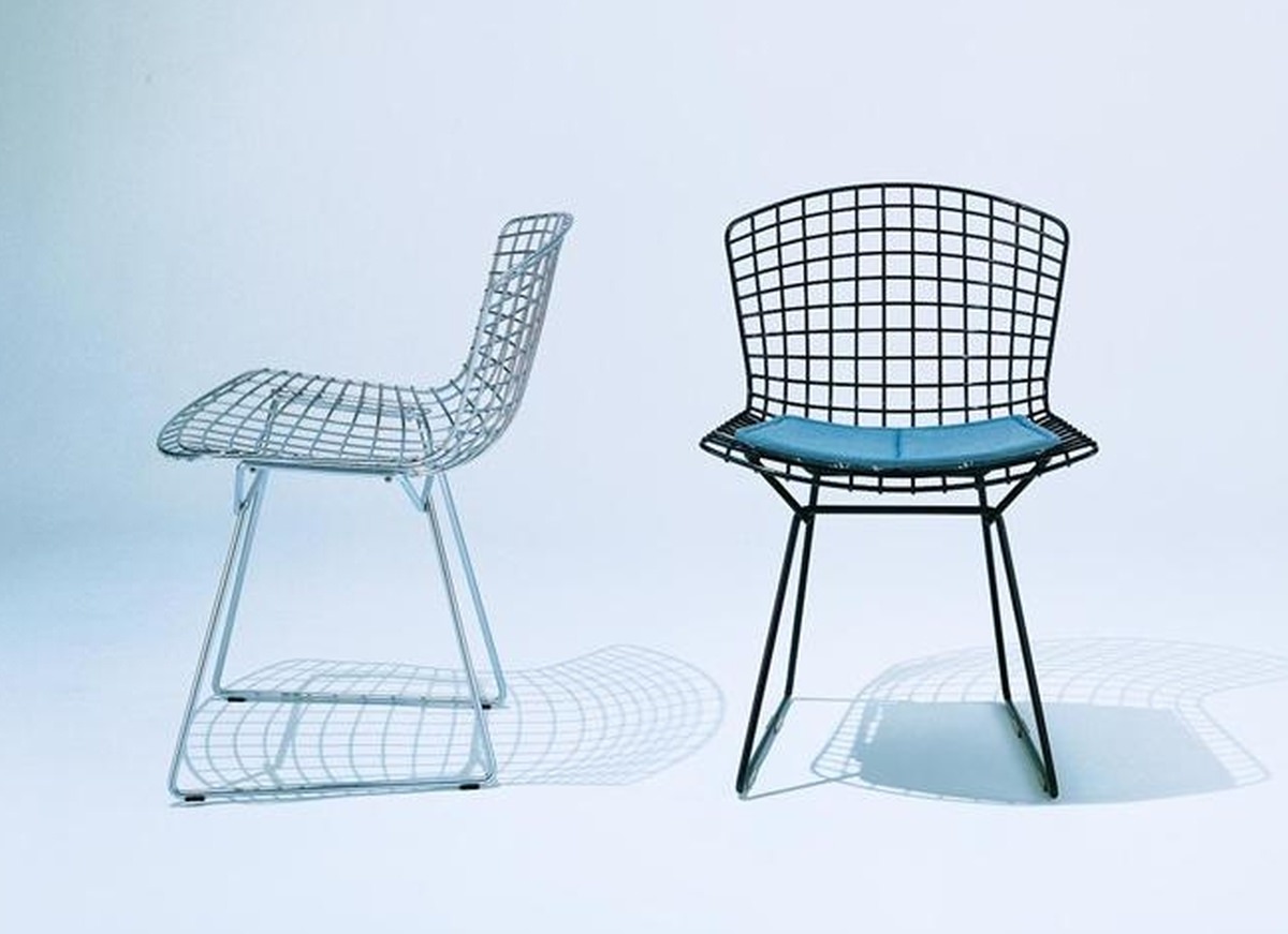 Der Bertoia Stuhl ist für die Verwendung im Innenbereich geeignet, es gibt auch spezielle Outdoormodelle. Die Ausführung kommt ohne Polster. Polster sind separat erhältlich.