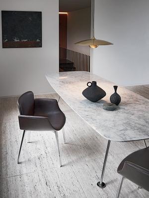 Der KN06 Stuhl von Knoll International, entworfen von Piero Lissoni, besticht durch seine fließende Form und außergewöhnliche Handwerkskunst. Die nahtlos geformte Sitzschale wirkt elegant und leicht, während die feine Polsterung hohen Komfort bietet. Mit seinem klaren Design und der Auswahl edler Materialien fügt sich der KN06 mühelos in moderne Wohnräume, Lounges oder Empfangsbereiche ein und verkörpert zeitlose Eleganz im Stil von Knoll.