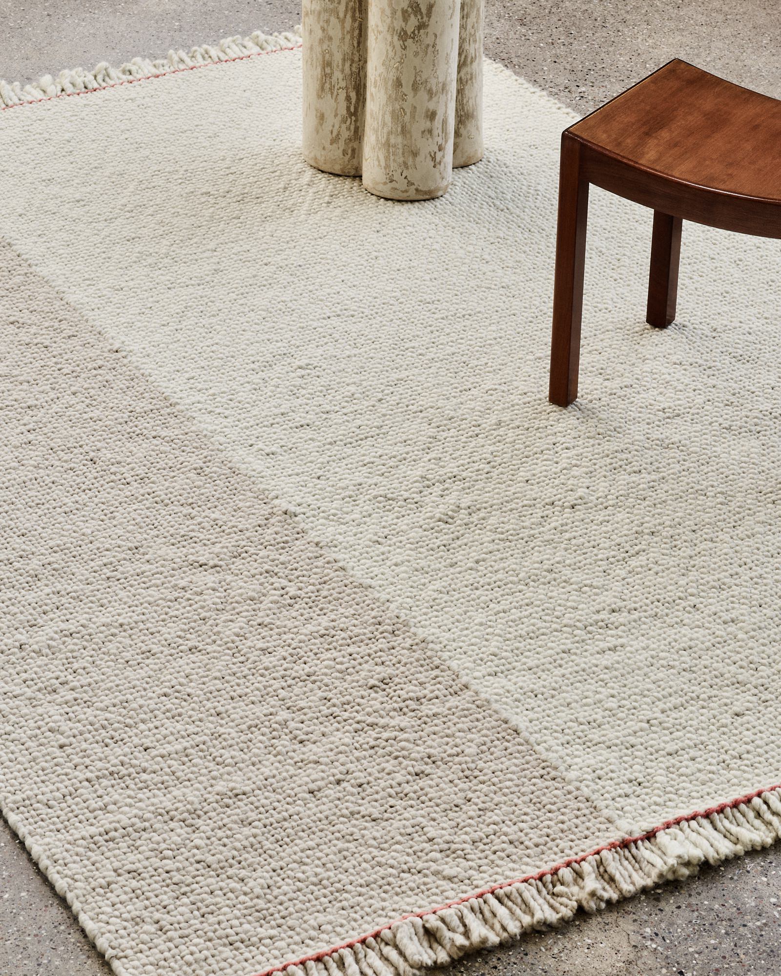 Die leichten Unregelmäßigkeiten verleihen dem Teppich seinen besonderen Charm und durch die grobe Webung, bekommt er eine ruhige und warme Stimmung zugesprochen.