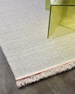 „Das völlig schlichte, flach gewebte Panamagebinde ist das archetypische Muster der Webkunst“, sagt Hella Jongerius. In dieser Hinsicht lässt sich das Design auf Hallingdal zurückführen, einen legendären Möbelbezugsstoff aus Kvadrats Archiven, der ebenfalls eine Panamabindung hat und für seine breite Zweiton-Farbpalette bekannt ist. Die unterschiedlichen Garnstärken und kontrastierenden Farben geben dem Teppich eine attraktive Unregelmäßigkeit.