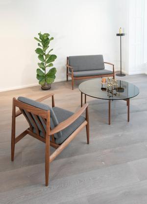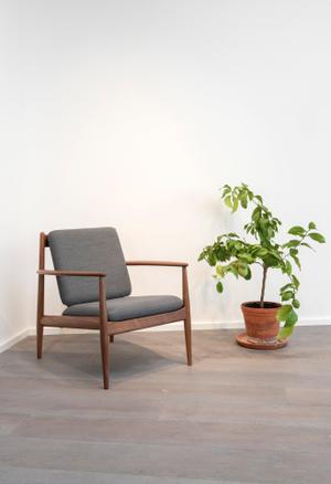 Die Serie GJ 118 entwarf Grete Jalk 1958 ursprünglich für den amerikanischen Markt. Die Möbel wurden für den Transport flach verpackt und wurden auch deswegen zum Bestseller. Heute werden die Möbel komplett montiert geliefert.