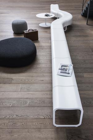 Im Japanischen ist „za“ ein geschützter Ort, an dem Menschen zusammenkommen. Früher waren das oft die Klöster der Mönche. Diese Tradition der Gastfreundschaft diente Shin & Tomoko Azumi als Inspiration für ein elegantes Sitzmöbelsystem, das ideal für Warteräume, Museen und Shops geeignet ist. Das System basiert auf einzelnen Modulen, die flexibel kombinierbar sind und durch Abwechslung von geraden und gebogenen Elementen eine besondere gestalterische Vielfalt bieten. Die einzelnen Teile werden durch ein Metallband verbunden, das die zeitlose Verbindung zwischen Menschen symbolisiert.