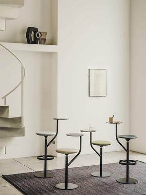 Aaron ist ein Möbelstück, das mehr als nur eine Funktion erfüllt. Es vereint Einladendes, Bequemes und Vielseitiges in einem durchdachten Design. Aaron präsentiert sich im Doppelpack, in Anlehnung an die beiden A im Namen: als eleganter Barhocker kombiniert mit einem praktischen Tischchen.