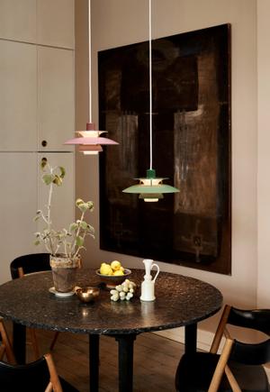Die PH5 Mini ist in modernen, frischen Farben erhältlich. Genau wie ihre Vorgänger gibt sie gemütlich warmes, gleichmäßig nach unten und zur Seite fallendes Licht ab. Dank Henningsens sorgfältigen Lichtstudien ist ein direkter Blick auf das Leuchtmittel aus keinem Winkel möglich – eine absolut blendfreie Beleuchtung entsteht, die uns bis heute Wohn-, Ess- und Schlafbereiche verschönert.