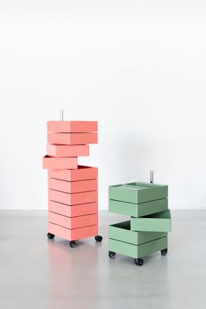Die 360° Rollcontainer lösen sich von der Form und der Bedienung der klassischen Rollcontainer. Wie beim einem Fächer drehen sich die Schübe um eine Achse. Im Gebrauch können so mehrere Schübe gleichzeitig geöffnet und zugänglich sein.