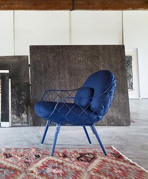 Den Piña Sessel gibt es auch für den Außenbereich. Hier ist das Gestell komplett aus rostschutzbehandeltem und polyesterlackiertem Stahldraht.