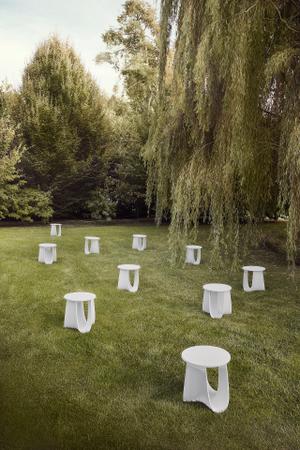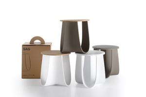 Der Hocker/Beistelltisch SAG ist ein Entwurf des Chefdesigners Oki Sato, Gründer des Erfolgslabels nendo. Für seine Arbeit gewann der Kanadier bereits mehrfach den „Designer des Jahres“, eine prestigeträchtige Auszeichnung des Wallpaper Magazin und Elle Decor Magazin. SAG ist erhältlich in Polyurethan (auch für den Outdoor-Bereich geeignet) sowie Bambus und ist trotz zarter Silhouette ein äußerst widerstandsfähiger Mitbewohner.