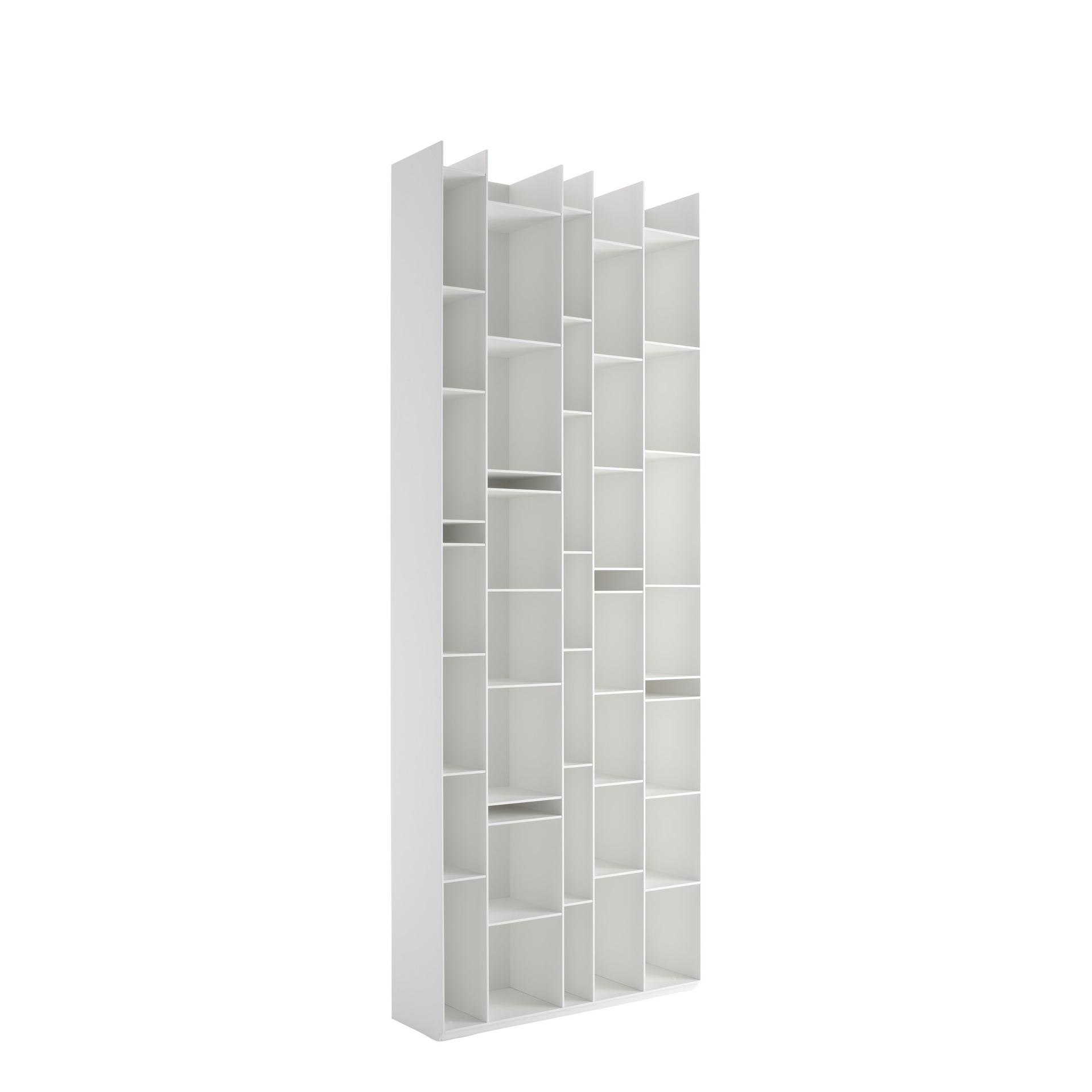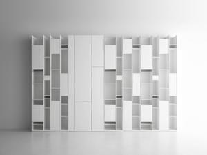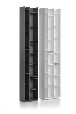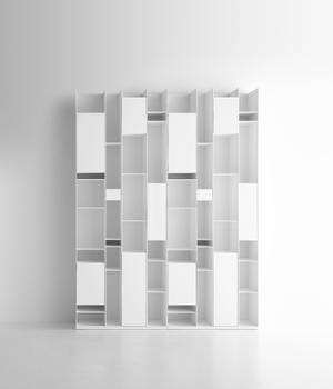 Der Entwurf der Random-Serie stammt aus dem münchener Studio Neuland Industriedesign. Die Kollektion umfasst verschiedene Farb- und Größenausführungen, teils mit, teils ohne Schranktüren. In Kombination ergeben sich so immer wieder neue Stauraum-Varianten, die sich dem Wohnraum individuell anpassen lassen. Die Fächer bestehen aus 6 mm-starken Holzfaserpaneelen, die mit einer melaminbeschichteten Rückwand abschließen. Die Regal-Füße sind verstellbar und gleichen unebene Böden aus. Für ganzheitliche Stabilität, ist eine zusätzliche Befestigung an der Wand zu empfehlen.