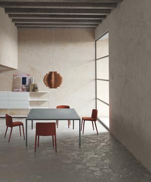 Der Tense Tisch von MDF Italia, entworfen von Piergiorgio und Michele Cazzaniga, steht für minimalistisches Design und technische Präzision. Mit seiner klaren Formensprache, den feinen Proportionen und einer durchgehenden, ebenen Tischfläche wirkt er zugleich leicht und stabil. Erhältlich in verschiedenen Größen und edlen Materialien wie Holz, Stein oder Fenix, passt sich Tense flexibel an Wohn- und Arbeitsbereiche an. Der Tisch vereint zeitlose Ästhetik mit funktionaler Qualität und ist ein echtes Statement für moderne, reduzierte Einrichtungskonzepte.