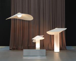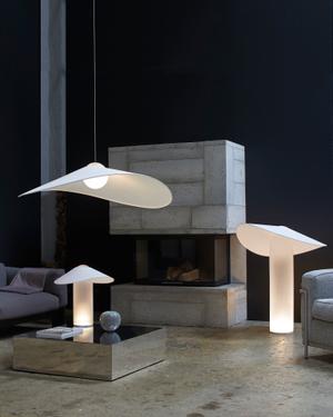Herkner kombiniert Papier, Glas und Stahl zu einer skulpturalen Leuchte, die Räume strukturiert und Atmosphäre schafft.