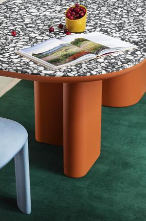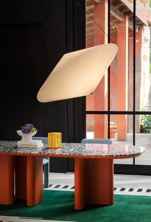 Der BonBon Tisch von Miniforms ist ein charakterstarker Design-Esstisch mit weicher, skulpturaler Formensprache. Sein markanter, konisch geformter Sockel trägt die runde Tischplatte und verleiht dem Tisch eine kraftvolle, zugleich harmonische Präsenz. Die sorgfältig ausgewählten Oberflächen und Materialien unterstreichen den modernen, italienischen Designanspruch. BonBon eignet sich ideal als Esstisch im Wohnbereich und setzt mit seiner ausdrucksstarken Silhouette ein stilvolles Statement im Raum.